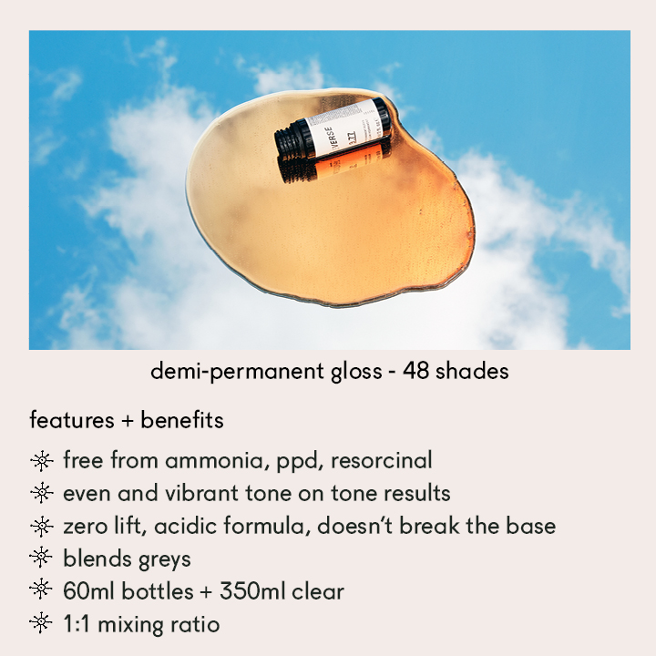 Choose from a full spectrum of 85 cream-based ammonia-free shades for complete coverage, controlled lightening, and long-lasting results. Alternatively, opt for 48 zero-lift, liquid shades in the demi-permanent gloss range, offering vibrant, even, tone-on-tone results and exceptional shine.